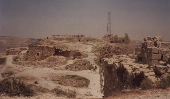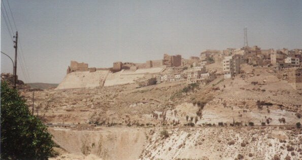![]() A view from the approach to Kerak Castle. The ground below the castle was build up in modern times for the purposes of preservation. |