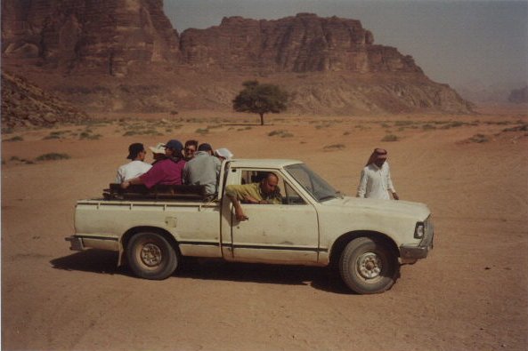 ![]() We travelled across the Wadi in 2 jeeps like this. It felt like our drivers were trying to race each other. |