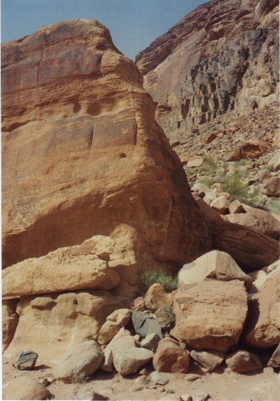 ![]() Very near the previous picture. Evidence that people stayed here is carved into the rock in the form of someone's family history. |